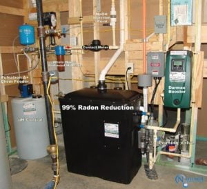 In the past year alone, we have found very high levels (up to 40,000 pCi/L) of radon in wells all around the Washington and Baltimore Metro Regions, specifically in Montgomery and Howard Counties, in Maryland. Each and every week, we have been installing radon remediation water treatment equipment in homes and offices throughout the entire area. There are many different types of radon remediation available to you depending on the level of radon present. For those with high levels of radon in water , an AIRaider can successfully and dependably remove radon and other Volatile Organic Compounds (VOCs) from your well water through a multi-stage aeration method that provides up to 99%+ radon reduction. For lower levels of Radon in water, a carbon tank will remove Radon from water to a safe level.